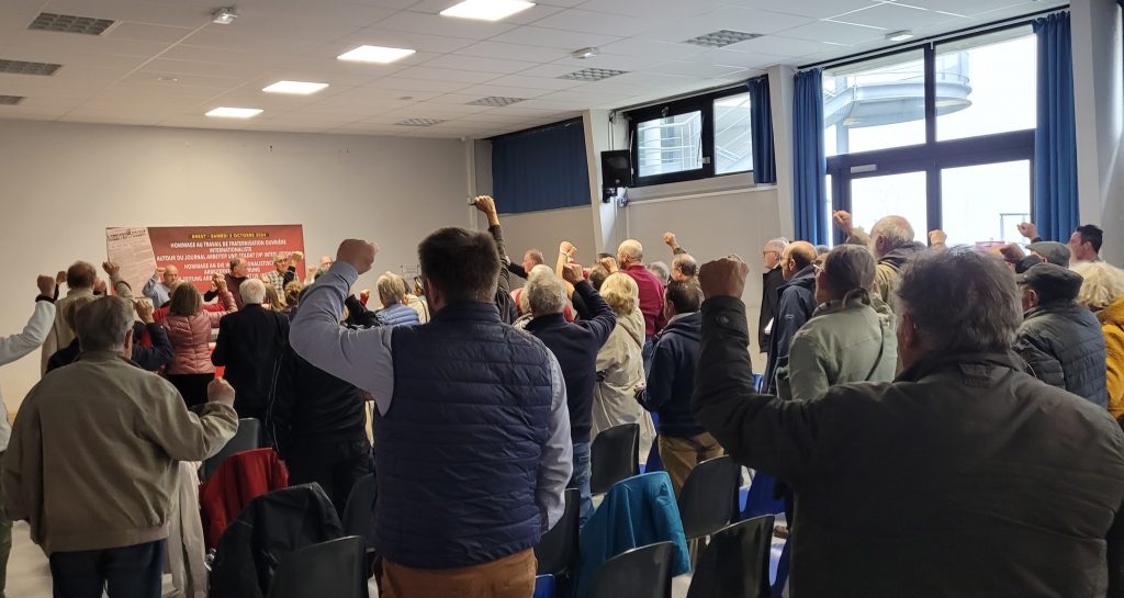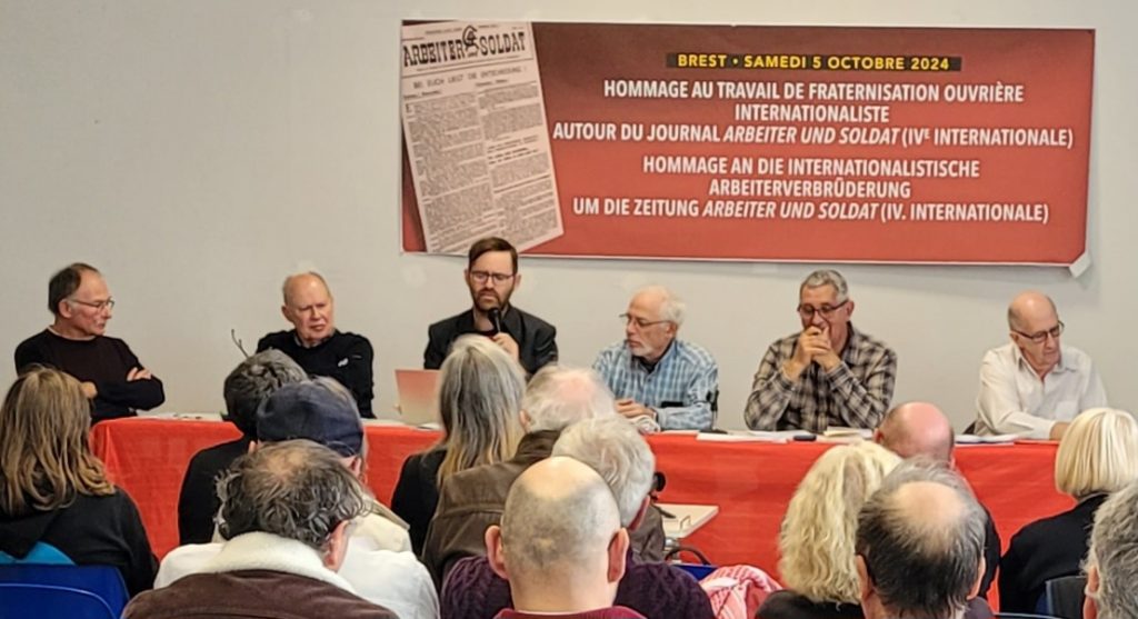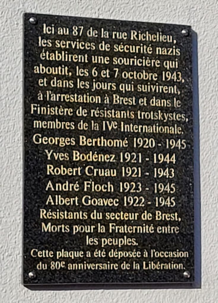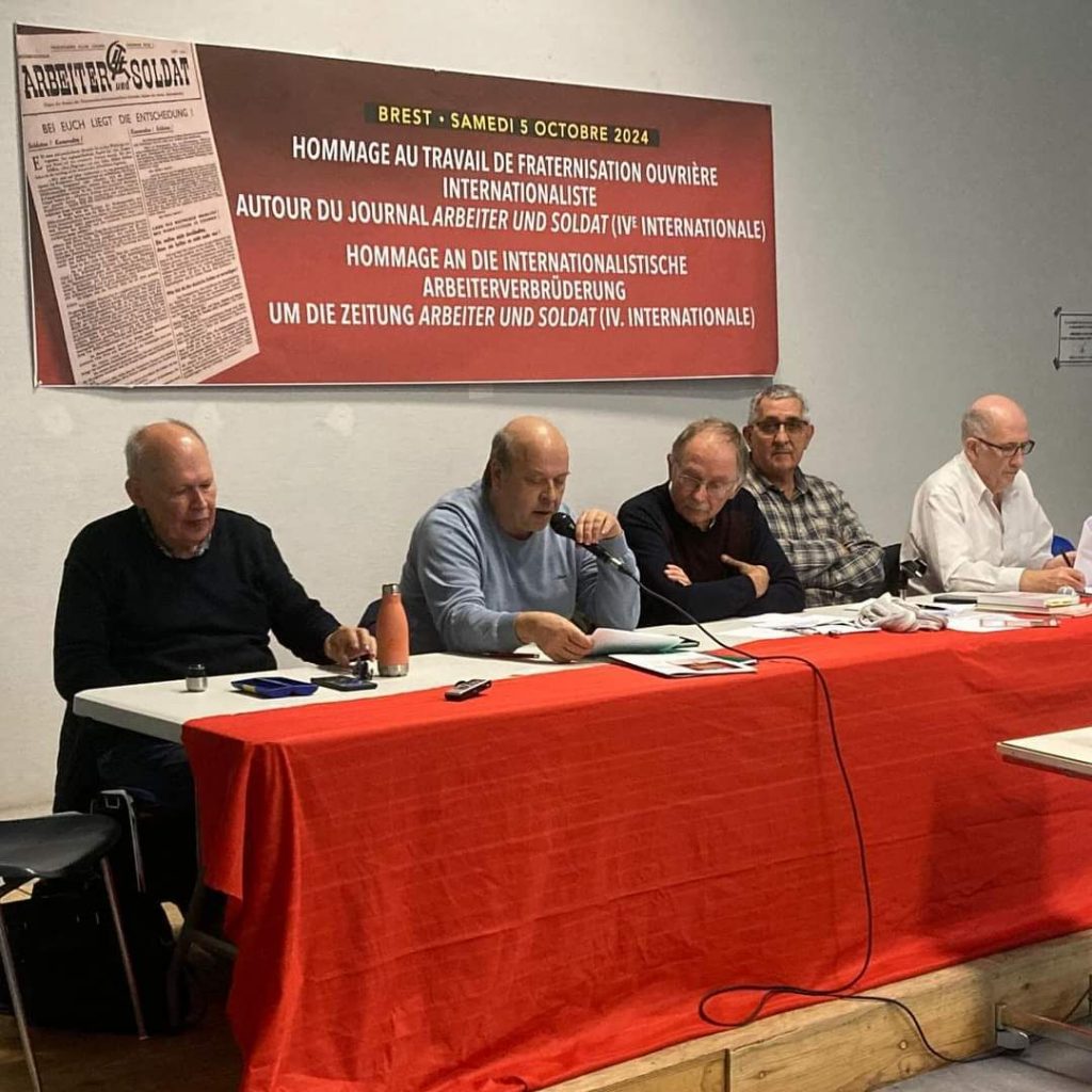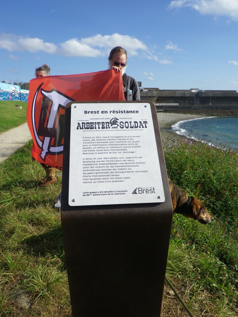 Würdigen wir zunächst das Engagement der Gemeinde Brest. Die beiden Gedenktafeln an der Rue Richelieu 87 und der Route de la Corniche mit Blick auf den U-Boot-Stützpunkt spiegeln deutlich wider, was François Cuillandre, Bürgermeister von Brest, in seiner Hommage an Robert Cruau, Georges Berthomé, Yves Bodénez, André Floch und Albert Goavec hervorhob: „Sie wussten, wie man die Freiheit trotz Kompromissen würdigt. Sie wussten es auch, indem sie ihr Ideal, ihr politisches Engagement, das der Vierten Internationale, hochhielten“. Vor allem aber ist die starke Beteiligung an diesem denkwürdigen Ehrentag hervorzuheben: Mehr als 150 Menschen haben an diesen Veranstaltungen oder zu einem Teil davon teilgenommen. 150 – und wie viele Abwesende haben es bedauert, nicht kommen zu können! – die nicht vergessen haben, dass junge französische Arbeiter und deutsche Soldaten, Arbeiter in Uniform, in diesen schrecklichen Jahren, als es Mitternacht im Jahrhundert war, in Brest ein anderes Blatt als den nationalistischen Hass geschrieben haben, das Blatt der internationalen Brüderlichkeit der Arbeiter. Die bewegenden Darbietungen eines spontanen Chors vor der Gedenktafel in der Rue 87 Richelieu und vor dem U-Boot-Stützpunkt drückte besser als alles andere aus, was uns acht Jahrzehnte später für immer mit unseren deutschen und französischen Kameraden um ihre Bulletins „Arbeiter und Soldat“ und „Front Ouvrier“ verbindet. Zuerst wurde in der Rue de Richelieu die Warschawjanka (Feindliche Stürme durchtoben die Lüfte) angestimmt: